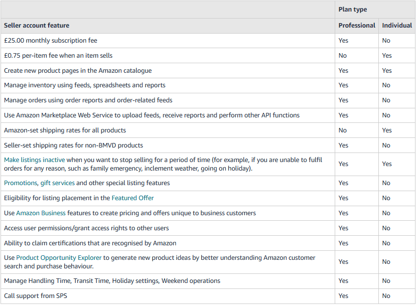 Here are the differences between Individual and Professional Selling Plan on Amazon: