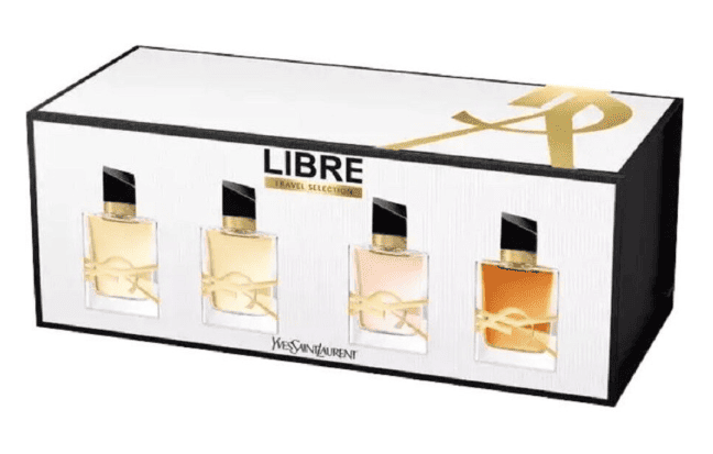 This perfume gift set offers four mini splash bottles (EDT, EDP, and two EDP Intense variations) from the popular Libre collection. The scent is a bold, modern floral with notes of lavender essence, orange blossom, and musk.