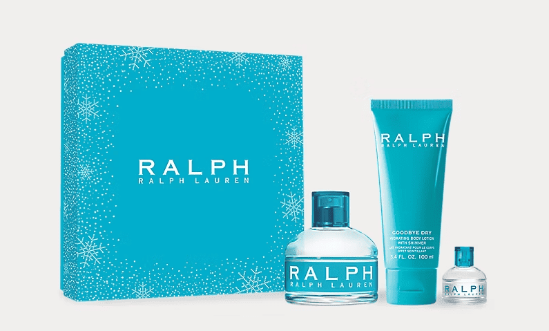 The set includes a large 100ml Ralph Eau de Toilette, a 7ml deluxe mini EDT, and a 100ml Body Lotion. Its crisp, energetic notes of green apple, pink magnolia, and musk give it broad appeal.