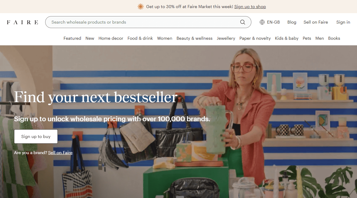Faire has quickly become the go-to platform for small, independent shops that want to stand out from big-box retailers. It connects you with thousands of independent makers and artisan brands.