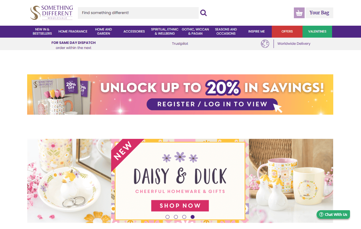 This supplier specialises in niche giftware, including home decor, incense, and crystals. They are an excellent partner for boutique owners who want unique products that aren't found in every high-street shop.