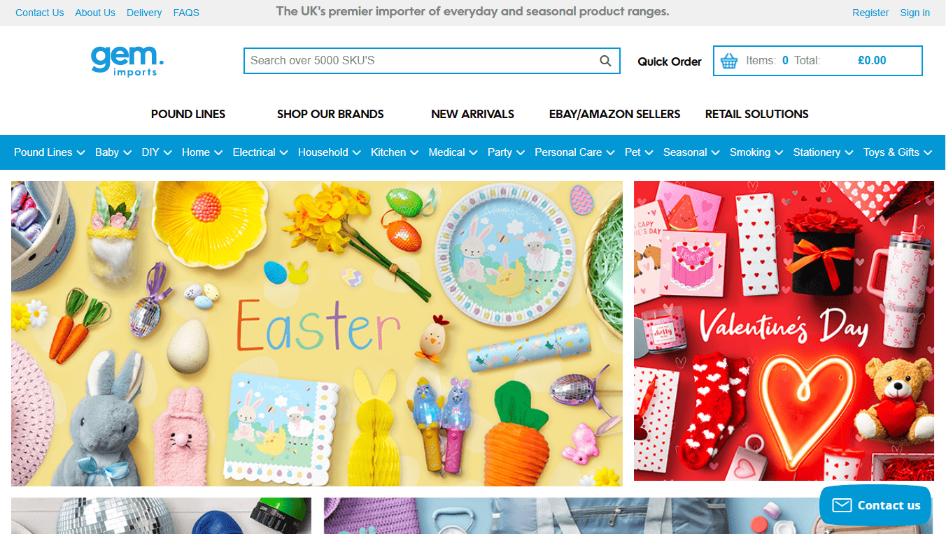 Gem Imports is a premier importer of everyday and seasonal goods in the UK. They focus on products that allow for quick turnover, such as stationery, toys, and party supplies. If you sell on marketplaces like eBay or Amazon, their products are often designed to fit standard shipping sizes and competitive price points.