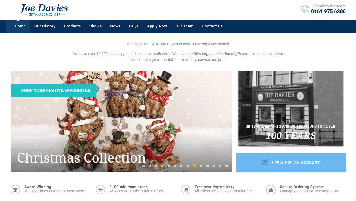 Joe Davies is a well-known name in the UK giftware industry. They are a 100% employee-owned company, which often results in a higher level of personal customer service. They carry over 10,000 lines, including home decor, fashion accessories, and jewellery.