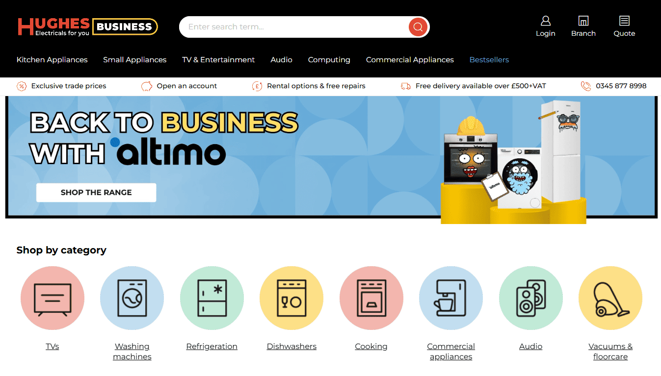 Hughes Trade is one of the top choices if your business sells technology or domestic appliances. They are a massive distributor that provides trade-only pricing on everything from small kitchen gadgets like kettles to high-end televisions and washing machines.